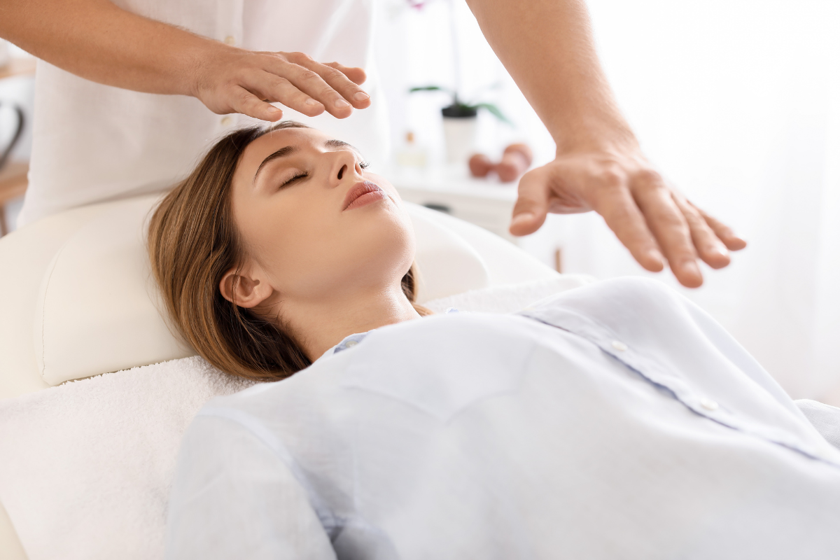 Reiki is a holistic healing practice where the practitioner channels energy into the patient by means of touch, to activate the natural healing processes of the patient's body and restore physical and emotional well-being. This practice is based on the idea that an unseen "life force energy" flows through us and is what causes us to be alive. If one's "life force energy" is low, then we are more likely to get sick or feel stress, and if it is high, we are more capable of being happy and healthy. Reiki treatments can lead to a reduction in stress and anxiety, improvement in sleep, and an overall sense of relaxation and well-being. It is a gentle practice that can be applied to various parts of the body, including the hands, feet, head, and other areas, depending on the needs of the individual.